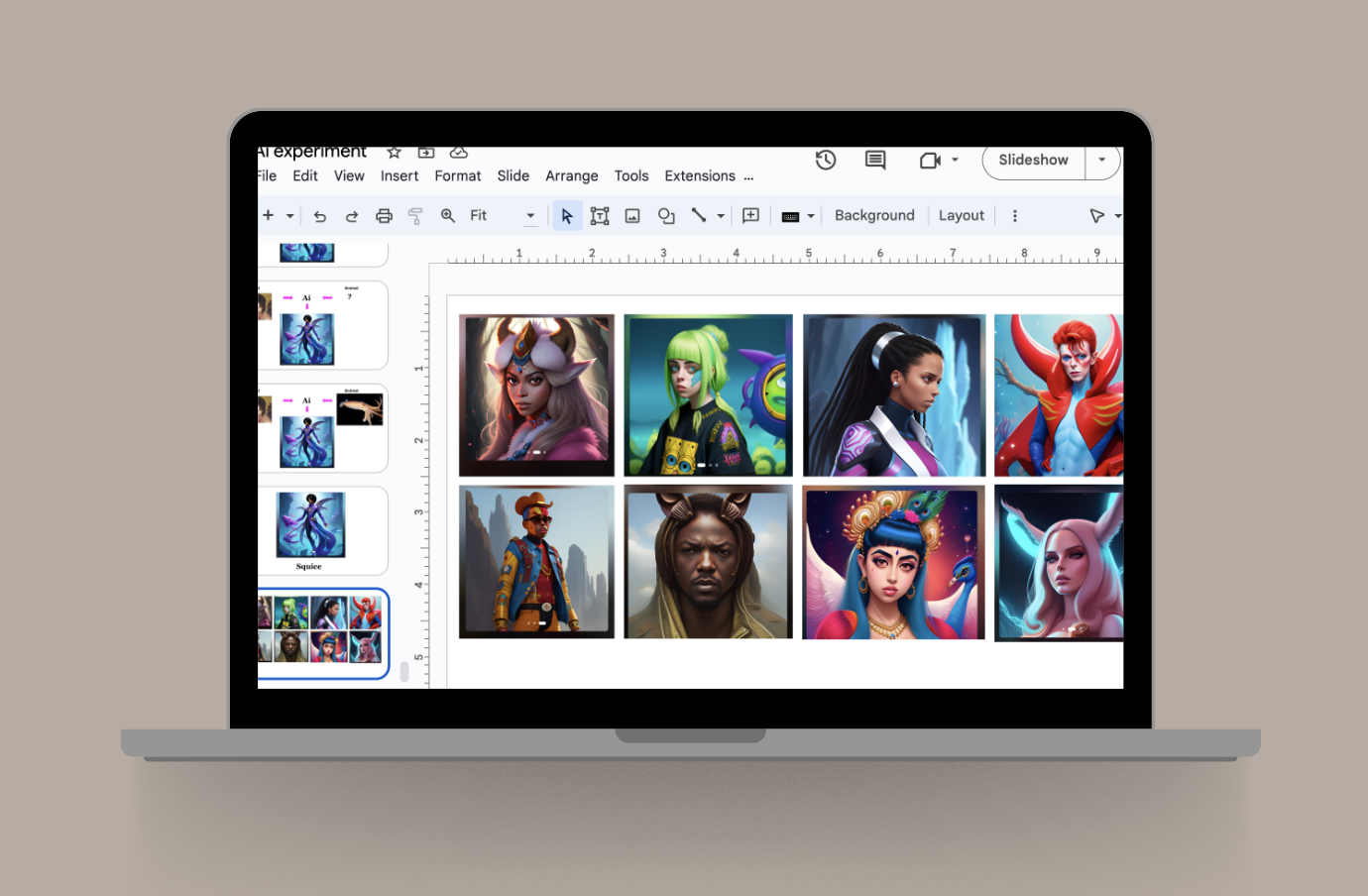 Visual riddles created with a text-to-image Ai generator combine elements from students’ favorite musicians and animation characters, crafting a single, unique persona. The resulting character possesses features from the animated realm and the real world, sparking students’ curiosity and creativity.